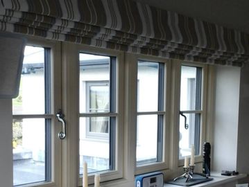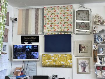 Roman, London, faux, wood louvre, vertical & roller. A numerious choice of textiles from plains, patterned. A super choice of novelty designs ideal for children & nurseries.
