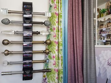 Curtain poles. tracks, tie back holders, trimmings.boat, caravan cushions.